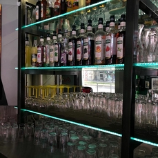 Réalisé au Palace Café à Grenoble. installation de LED derrière les étagères en verre.